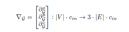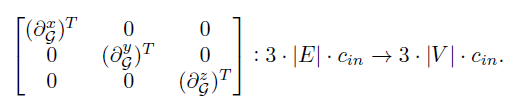 该梯度对于x,y,z方向,作用于顶点空间,其输出大小是图形边缘空间的3倍。为了将梯度收回顶点空间,作者使用了一个边缘平均算子: