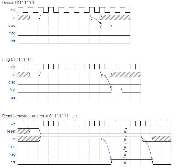 - 0111110: Signal a bit needs to be discarded (disc).