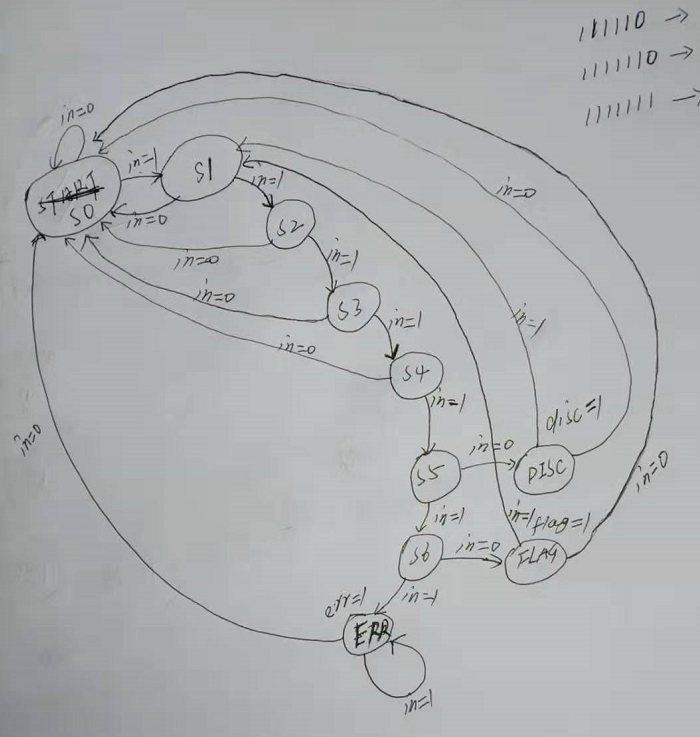 localparam S0 = 0, S1 = 1, S2 = 2, S3 = 3, S4 = 4, S5 = 5, S6 = 6, DISC = 7, FLAG = 8, ERR = 9;