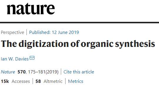2019年7月,普林斯顿大学的Ian W. Davies学者在Nature上发表了一篇文章——有机合成的数字化。