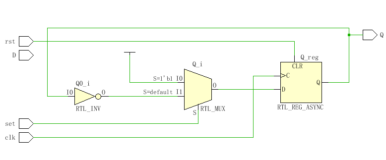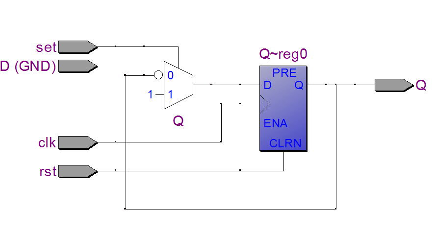 3、用D触发器带同步高置数和异步高复位端的二分频的电路,画出逻辑电路,Verilog描述。