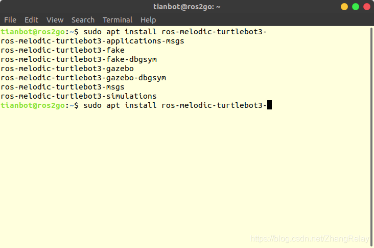 tianbot@ros2go:~$ export TURTLEBOT3_MODEL=burger
