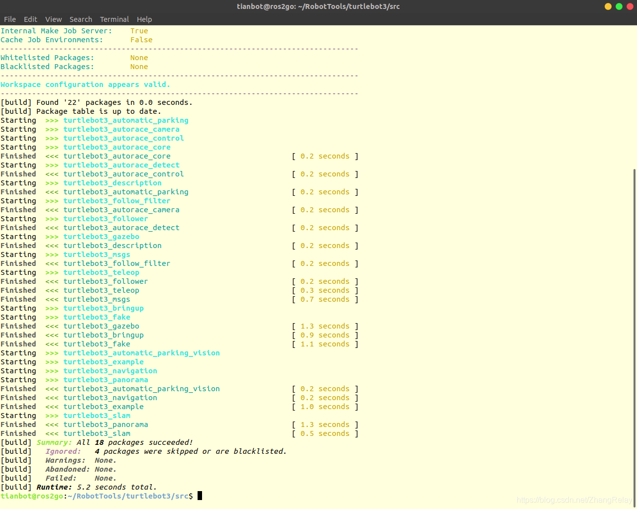 编译完成后,更新配置文件即可使用(source setup.bash)。
