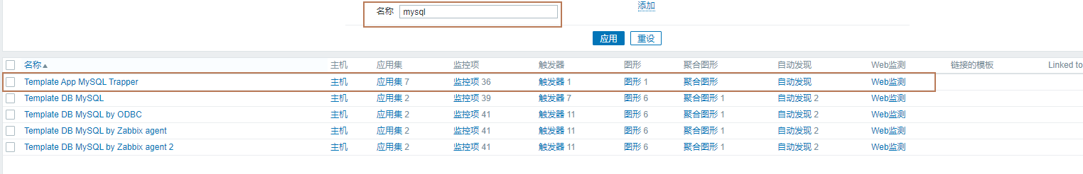 导入之后可以看到名为Template App MySQL Trapper的模版,表示导入成功