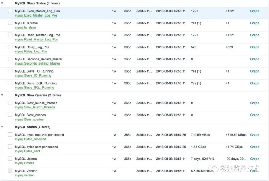 由于指标较多目前添加了基础的监控指标,SHOW /!50001 GLOBAL / STATUS和SHOW /!50001 GLOBAL / 命令支持的指标都支持监控!!! 只需要在模版里添加新的item即可。clone当前的指标,修改就可以了