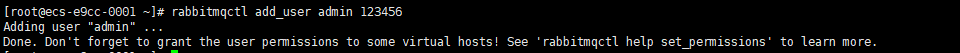 [root@ecs-e9cc-0001 ~]# rabbitmqctl add_user admin 123456