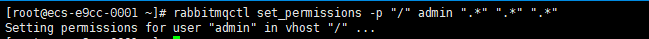 [root@ecs-e9cc-0001 ~]# rabbitmqctl set_permissions -p "/" admin ".*" ".*" ".*"
