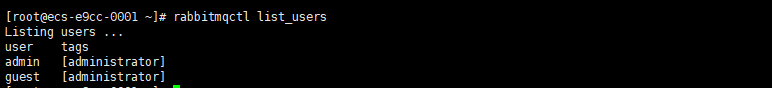 [root@ecs-e9cc-0001 ~]# rabbitmqctl list_users