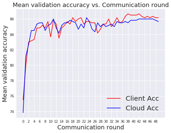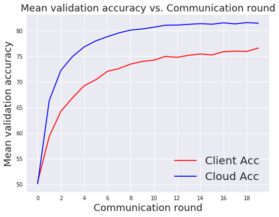 print("Personalized cloud model average validation accuracy: {0:5.2f}%".format(val_acc_avg))
