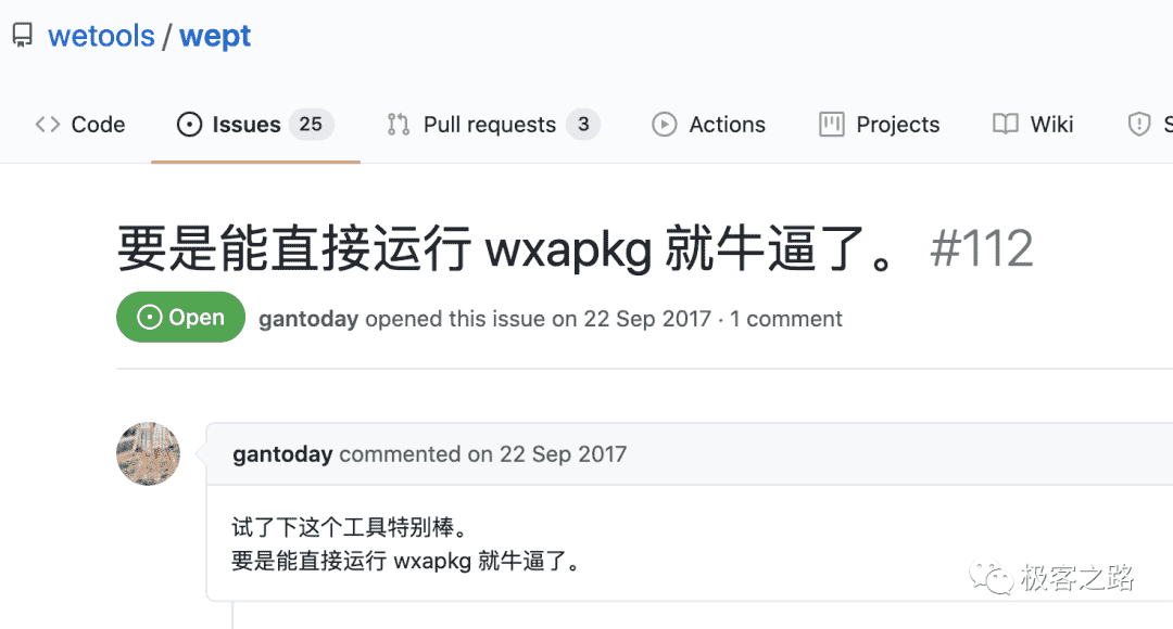 有一次偶然在 wept 的 issue 里看到一个有意思的问题,就是有个同学问,可不可以支持小程序直接从 wxapkg 包启动运行,这个想法挺有意思的,简要说一下效果就是:拿到小程序的 wxapkg 源码包,执行一个命令之后,就可以直接在浏览器里看到小程序的界面,听上去就蛮好玩的吧。