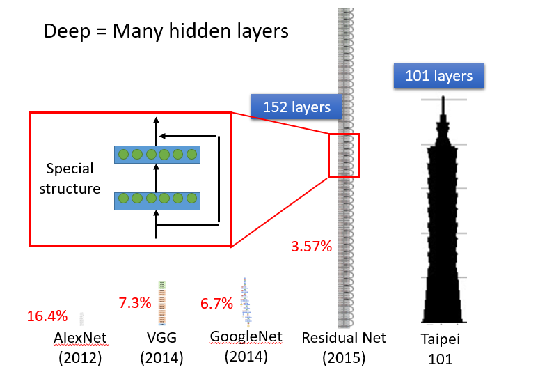 老师在PPT中举了几个神经网络的例子,可以观察到由于层数的增加,相应的精度也会增加。