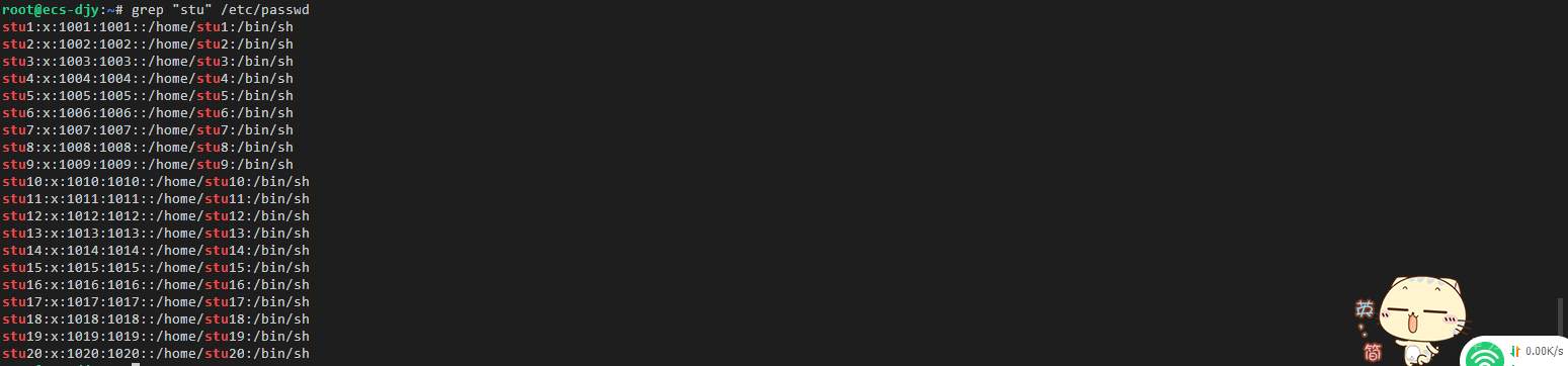 批量添加20个系统用户账号,用户名依次为“stu1”、“stu2”、......、“stu20”