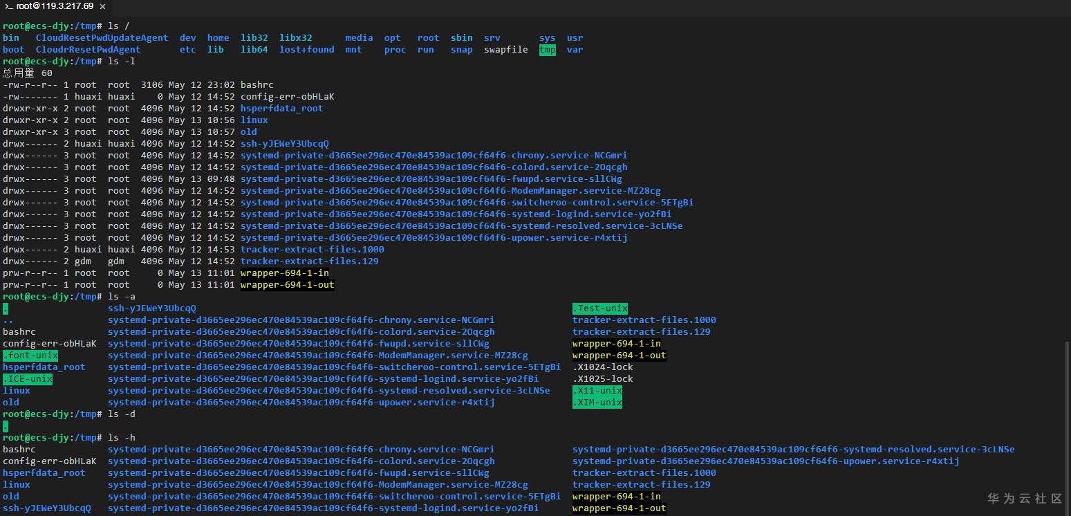 - 多个短格式选项可以写在一起,只用一个“-”引导,例如“-al"