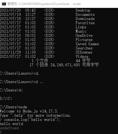 我们将node安装完成之后,需要在cmd命令行中运行,因此,我们先熟悉一些经常用到的cmd命令语句。