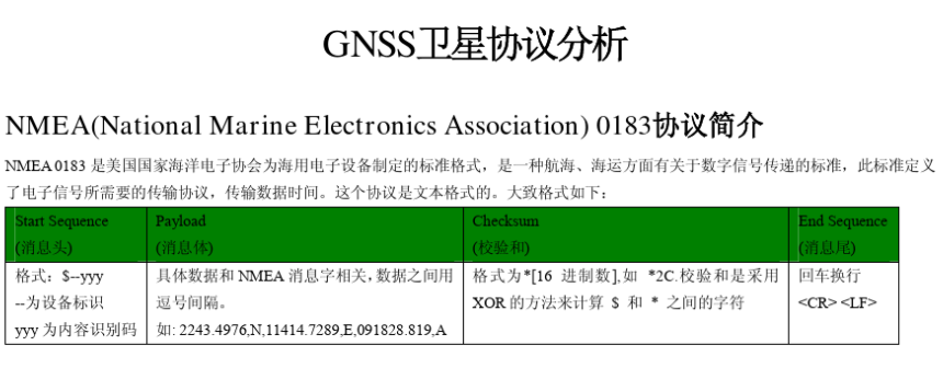NMEA 0183是美国国家海洋电子协会(National Marine Electronics Association )为海用电子设备制定的标准格式。目前已成了设备统一的RTCM(Radio Technical Commission for Maritime services)标准协议。