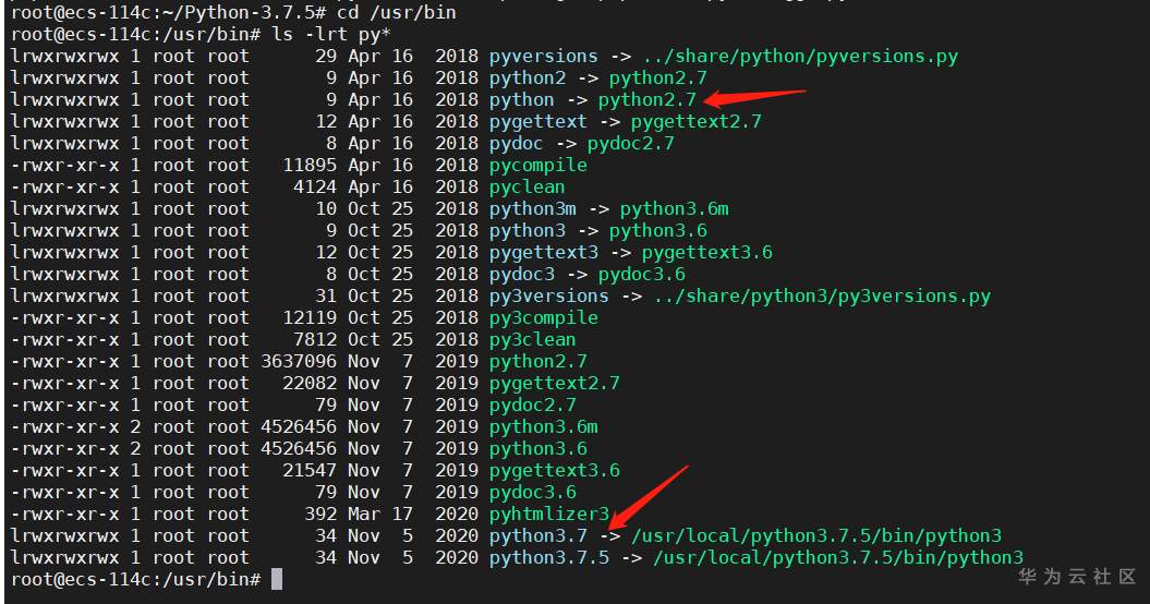 make install完毕后,检查软链接好像指向的还是Python2