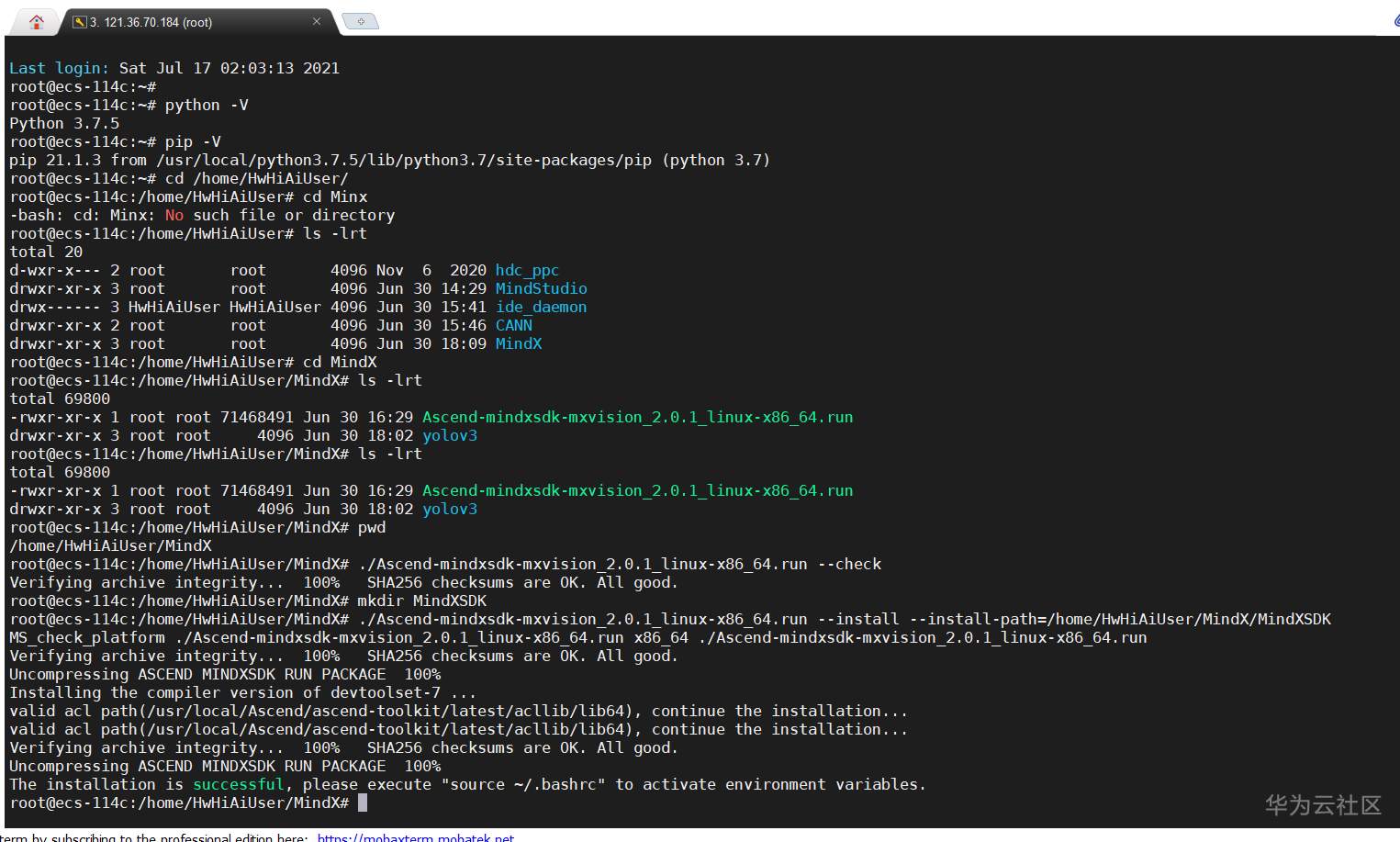 MindX SDK环境安装:4分,附带成功安装的截图(带时间日期)