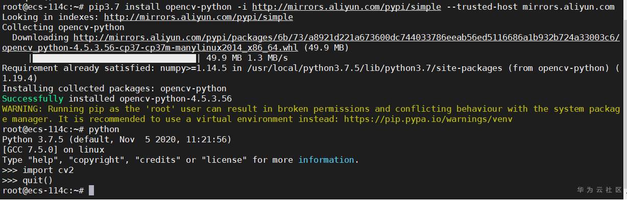 pip3.7 install opencv-python -i http://mirrors.aliyun.com/pypi/simple --trusted-host mirrors.aliyun.com