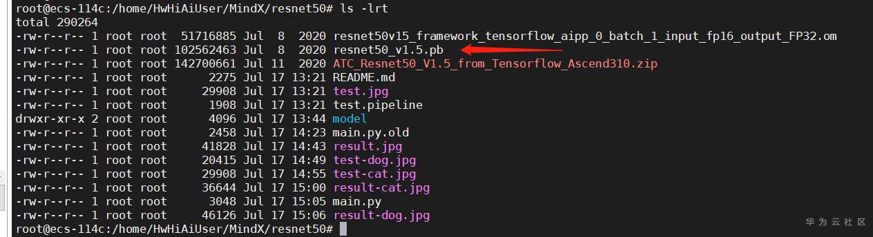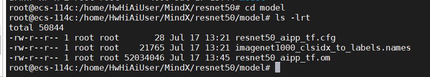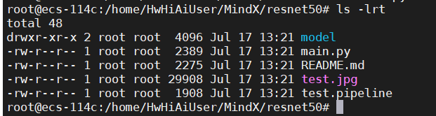 先建个resnet50的目录:/home/HwHiAiUser/MindX/resnet50