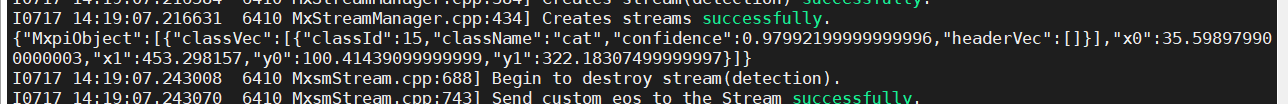 {"MxpiObject":[{"classVec":[{"classId":15,"className":"cat","confidence":0.97992199999999996,"headerVec":[]}],"x0":35.598979900000003,"x1":453.298157,"y0":100.41439099999999,"y1":322.18307499999997}]}