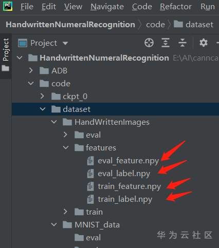 它会建立 dataset/HandWrittenImages/features 目录,并将图片一个个保存成npy格式。
