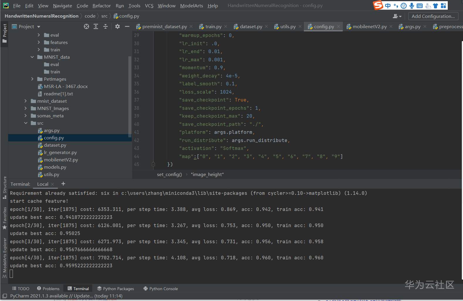 先把 MindSporePetClassification 工程目录下大的数据集移走,然后复制一份,改名为 HandwrittenNumeralRecognition。(手写数字识别)