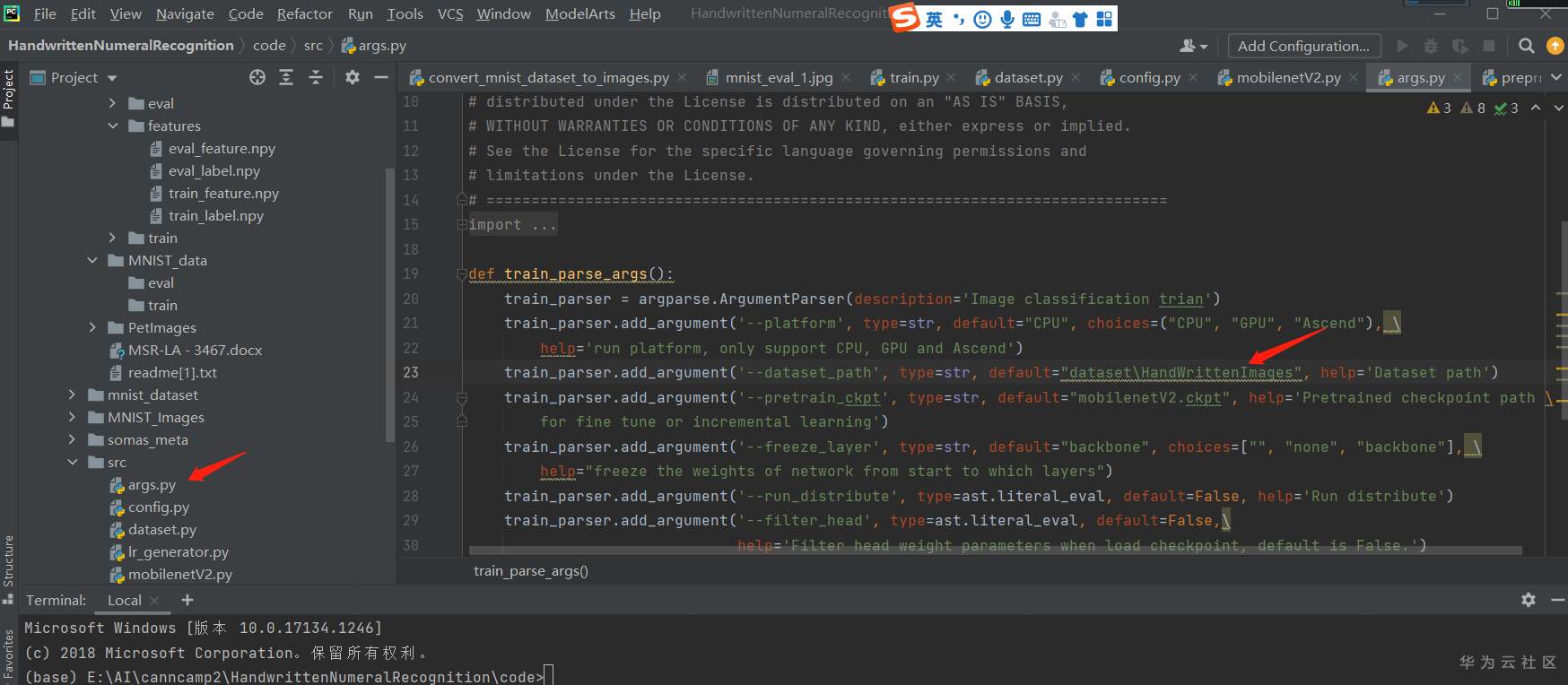 在执行这个脚本之前,先需要在dataset下建个目录:HandWrittenImages(跟PetImages正好对应)