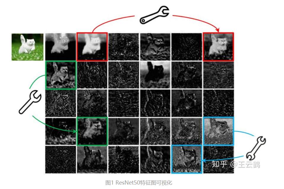 具体的思想来源是:当分析到ResNet50的经过第一个残差块处理后的feature map拿出来,可以看到以下的结果:相同颜色的feature map非常相似。。(原图中,输出的通道数很多。导致整体计算量大,存储量也很大。但是feature map高度相似)