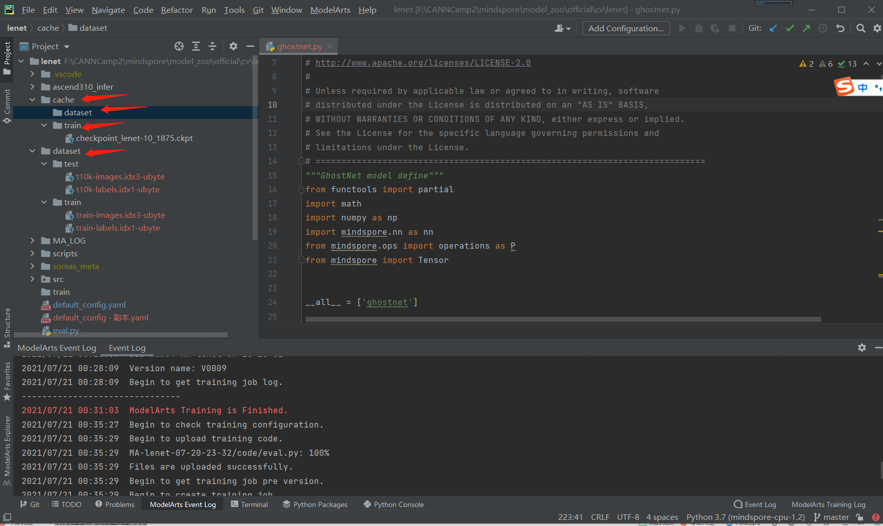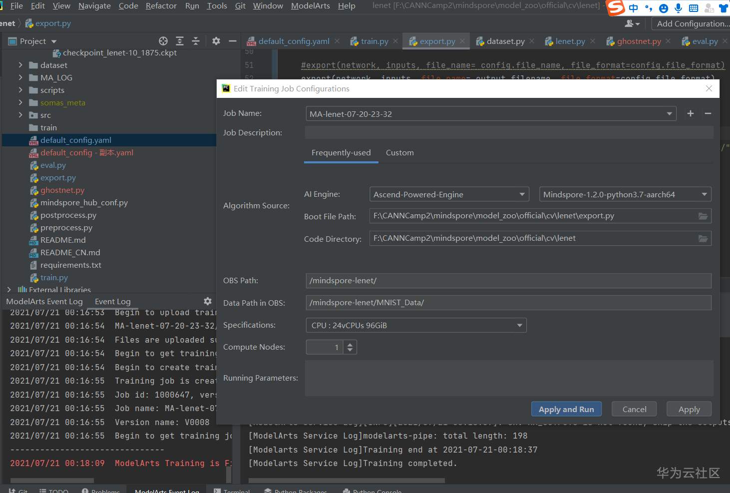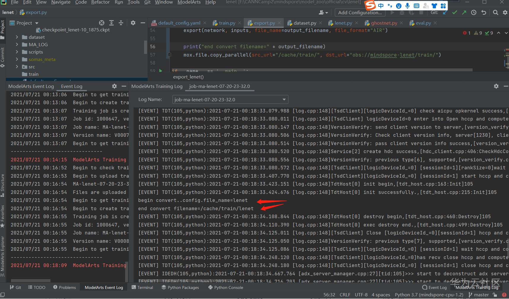 可见lenet.air和lenet.mindir文件都已经成功生成。
