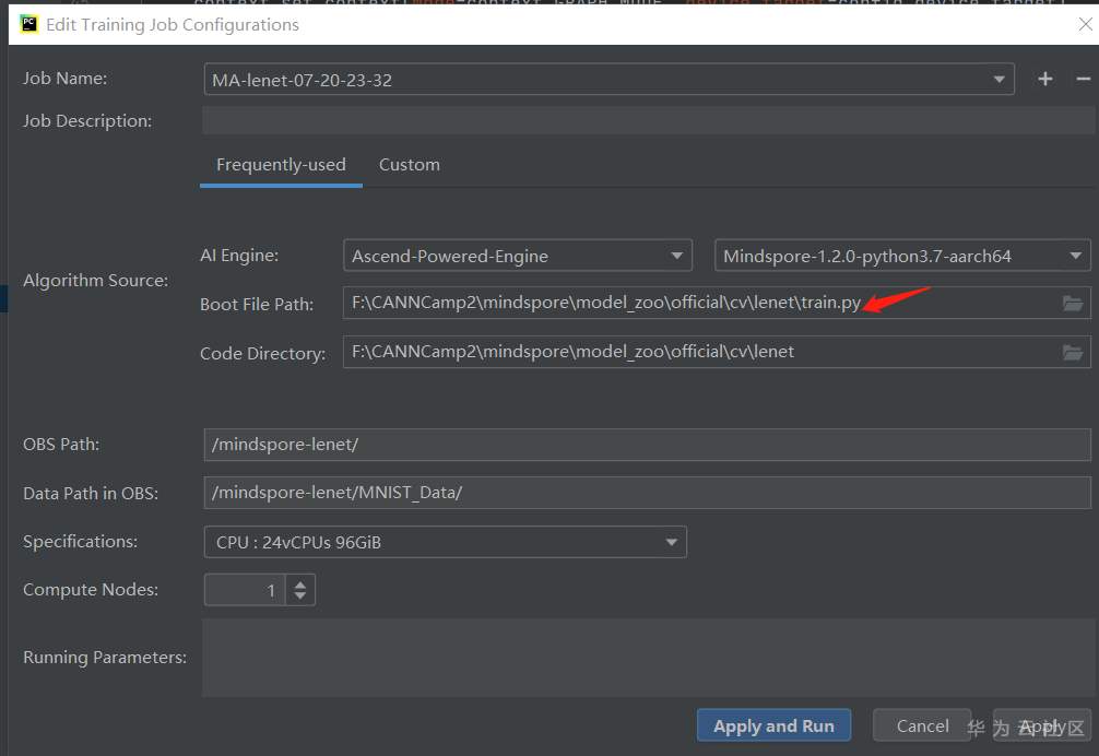 在现有环境下跑通train.py 需要将 数据集上传到OBS: