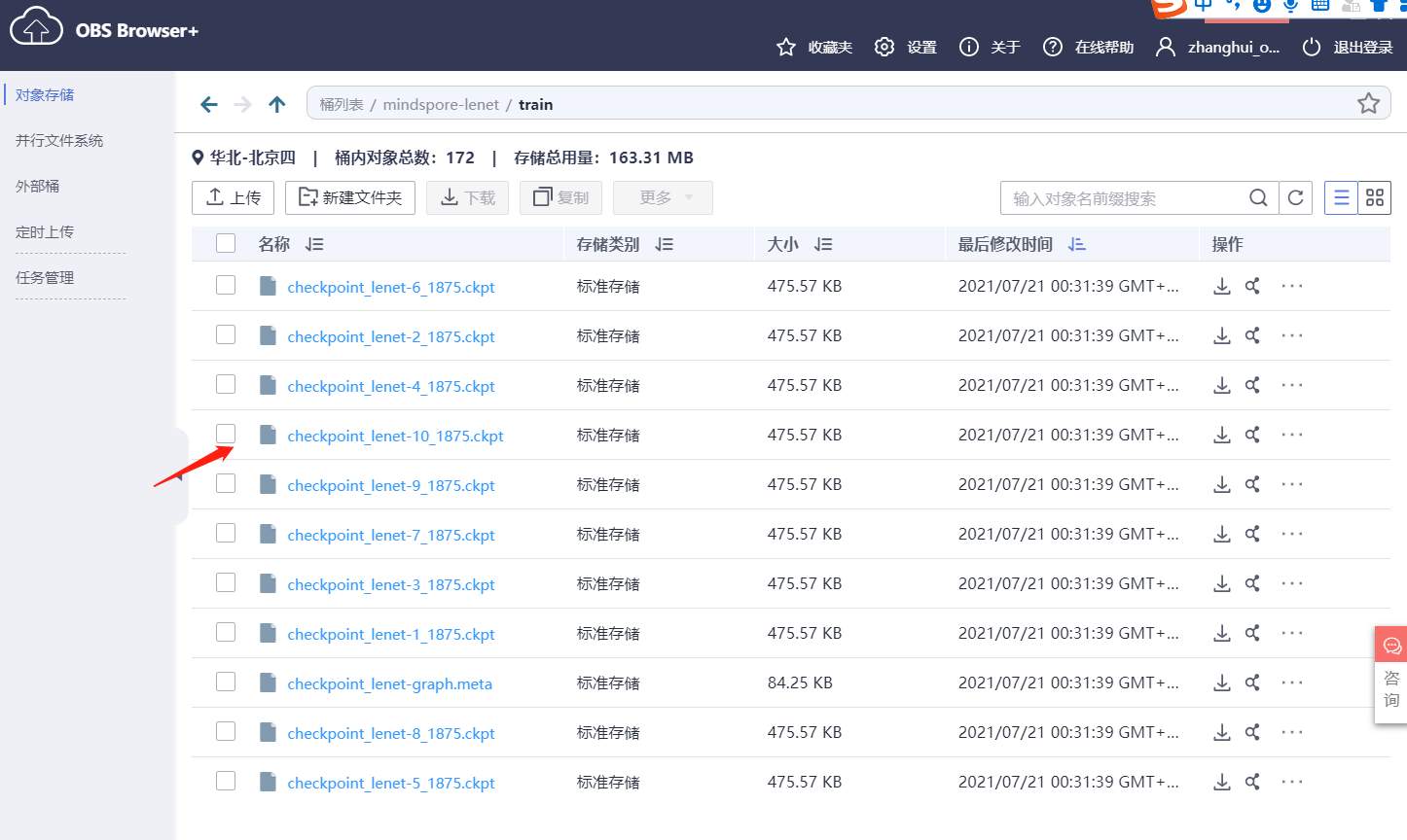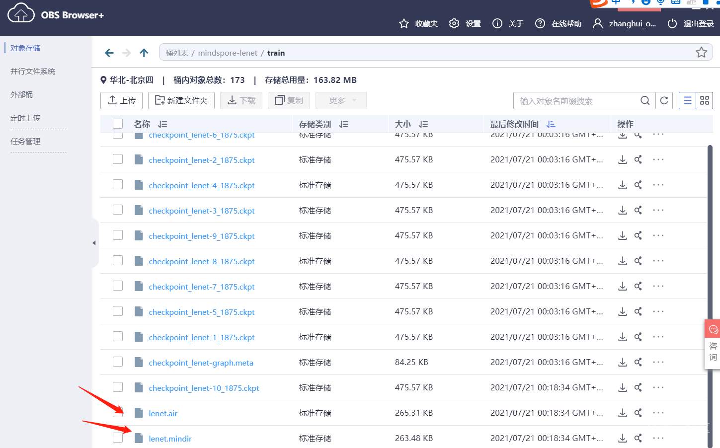 mox.file.copy_parallel(src_url="/cache/train/", dst_url="obs://mindspore-lenet/train/")