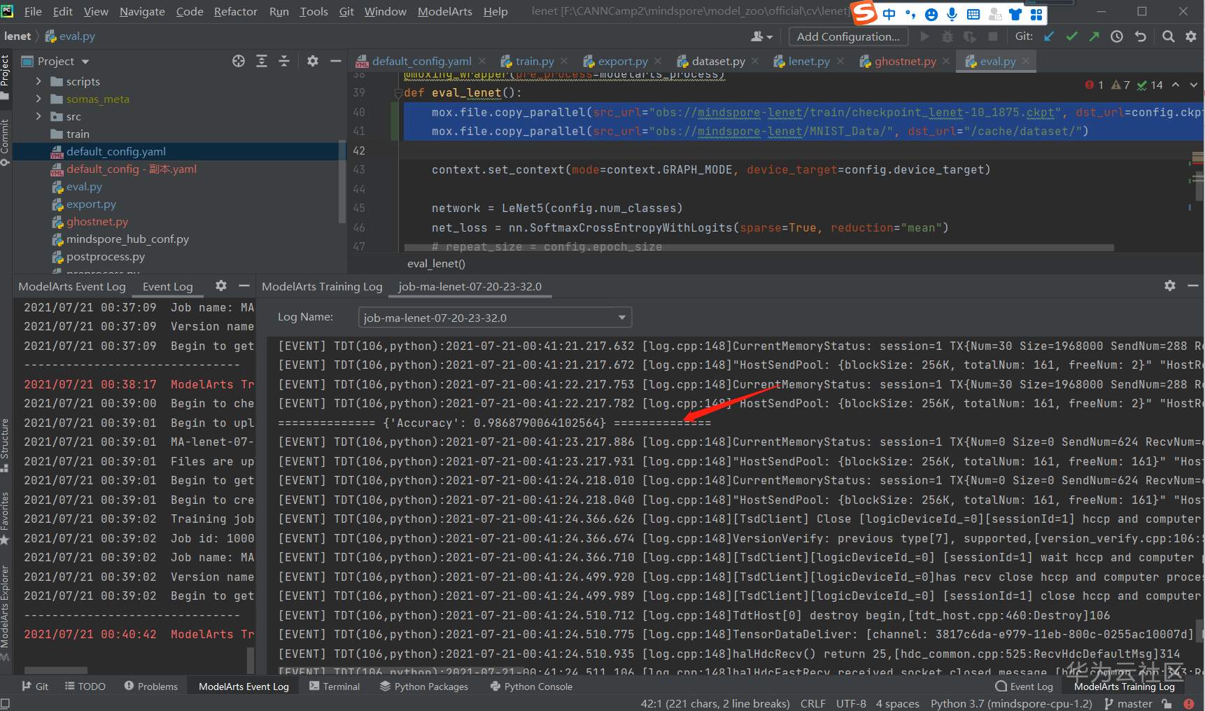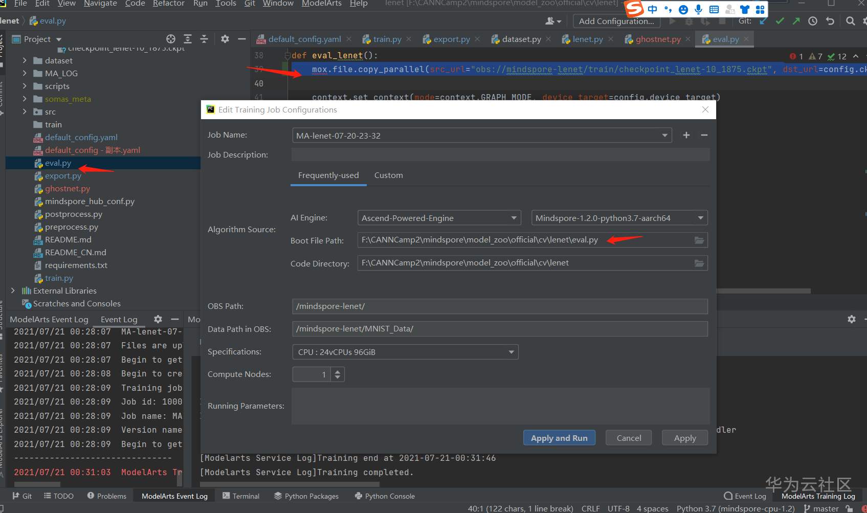 修改评估代码eval.py,将OBS的ckpt再拷贝回docker