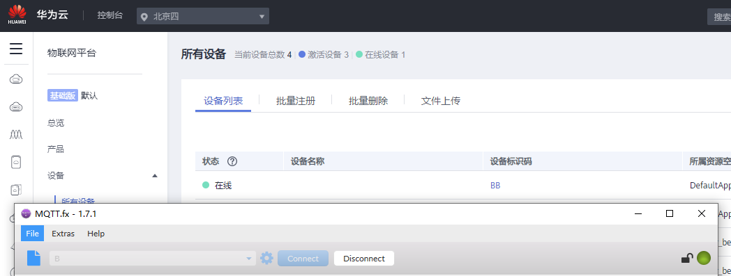 复制 我 这个地址 也可以 ,所有人 都是一样的 ,华为云 MQTT 统一 接入 地址 iot-mqtts.cn-north-4.myhuaweicloud.com