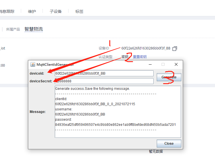 mqttclientldGenerator使用超简单 ,把 华为云 设备 ID 填入 ,密钥 填入 ,即可 生成 ,