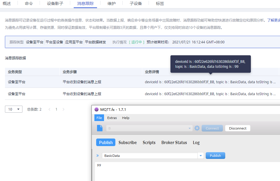 华为云平台 ,消息跟踪,开启后