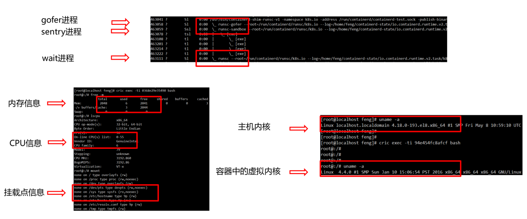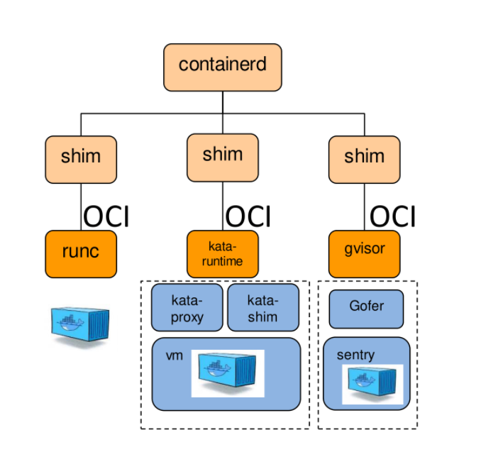 - Runc:基于linux的namespace、cgroup和capability等技术实现隔离的容器实现- Kata containers:基于虚拟化隔离技术的容器实现
