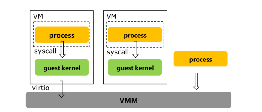 ⒉轻量化:为了达到和容器近似的使用体验,需要对各组件进行裁剪,达到轻量化和启动加速的目的,对于hypervisor,去除通用虚拟化的各种不必要的设备、总线等。对于guest kernel,也裁剪了大量不需要的驱动和文件系统模块。而运行在虚拟机中的1号进程(一般为kata-agent),资源占用可小于1MB。
