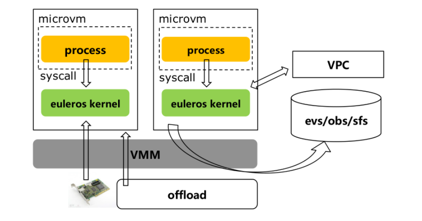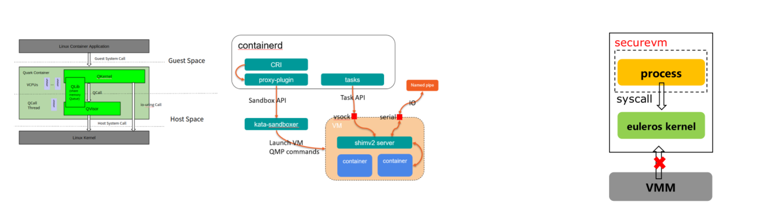 1.轻量化: hypervisor采用华为云自研的qemu-microvm,guest kernel采用裁剪EulerOS内核、主机shimv2采用rust语言重写。