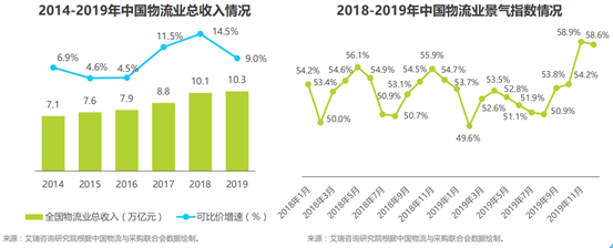 物流的概念最早是在美国形成的,起源于20世纪30年代,原意为“实物分配”或“货物配送”,后来被引入日本,日文意思是“物的流通”。中国的“物流”一词是从日文资料引进来的外来词,源于日文资料中对“Logistics”一词的翻译“物流”。中国物流术语标准将物流定义为:物流是物品从供应地向接收地的实体流动过程中,根据实际需要,将运输、储存、装卸搬运、包装、流通加工、配送、信息处理等功能有机结合起来实现用户要求的过程。物流业是国民经济体系中极为重要的基础性战略性产业,涉及领域广,吸纳就业人数多,在促进产业结构调整、转变经济发展方式和增强国民经济竞争力等方面有着举足轻重的作用。近年来,中国物流业在互联网经济的催动下发展较快,景气指数基本保持在50%以上,业务总量、新订单和从业人员都处于持续扩张的状态。