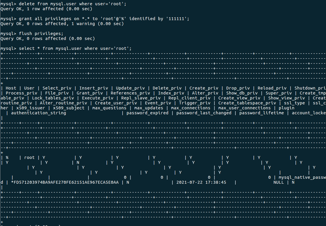 grant all privileges on *.* to 'root'@'%' identified by 'rootpwd'