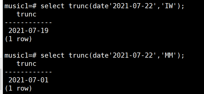 | trunc(date,varchar) | 获取特定的日期,如上个周几等 |
