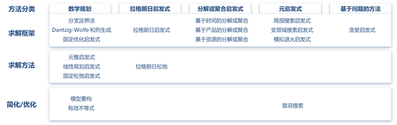 这类方法主要针对换型变量非常多且约束矩阵稀疏的问题,求解结果中只有某些换型变量被考虑且变量间关联约束较少的问题。如果考虑所有换型变量同时求解,巨大的变量数会使得求解非常困难;而通过一步一步添加对目标函数有益的变量的方法能够极大地提升找到解决方案的效率。