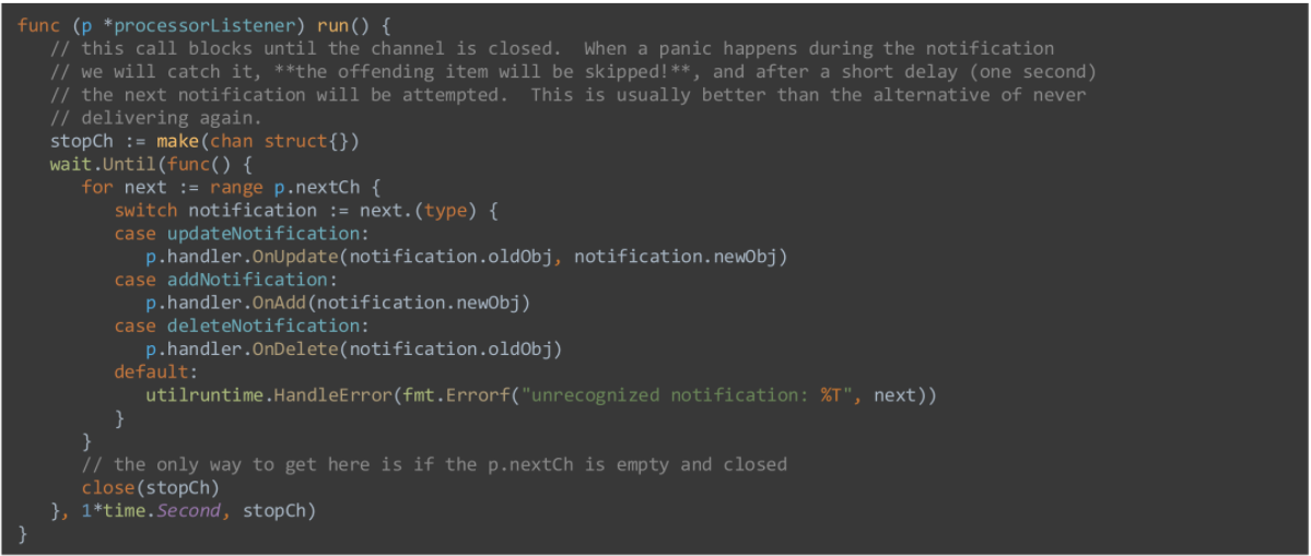 3.Process Item:处理任务队列中对象的函数,这些函数通常使用Indexer引用或Listing包装器来重试与该key对应的对象。