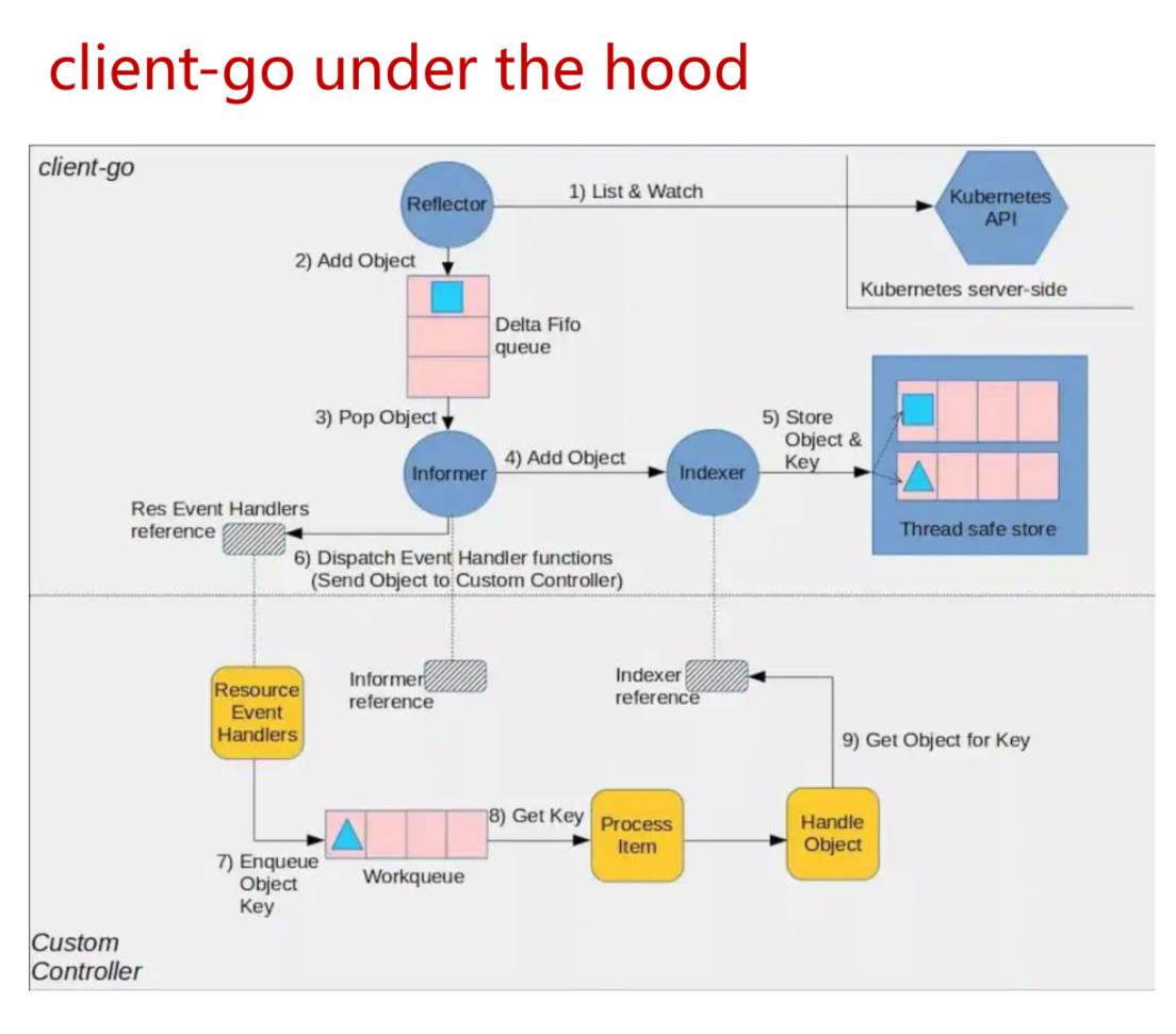 1. Informer reference:指的是Informer实例的引用,定义如何使用自定义资源对象。自定义控制器代码需要创建对应的Informer。