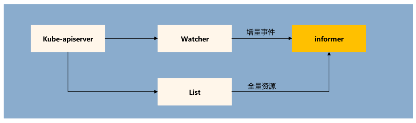 K8S的informer模块封装list-watch API,用户只需要指定资源,编写事件处理函数,AddFunc,UpdateFunc和DeleteFunc等。