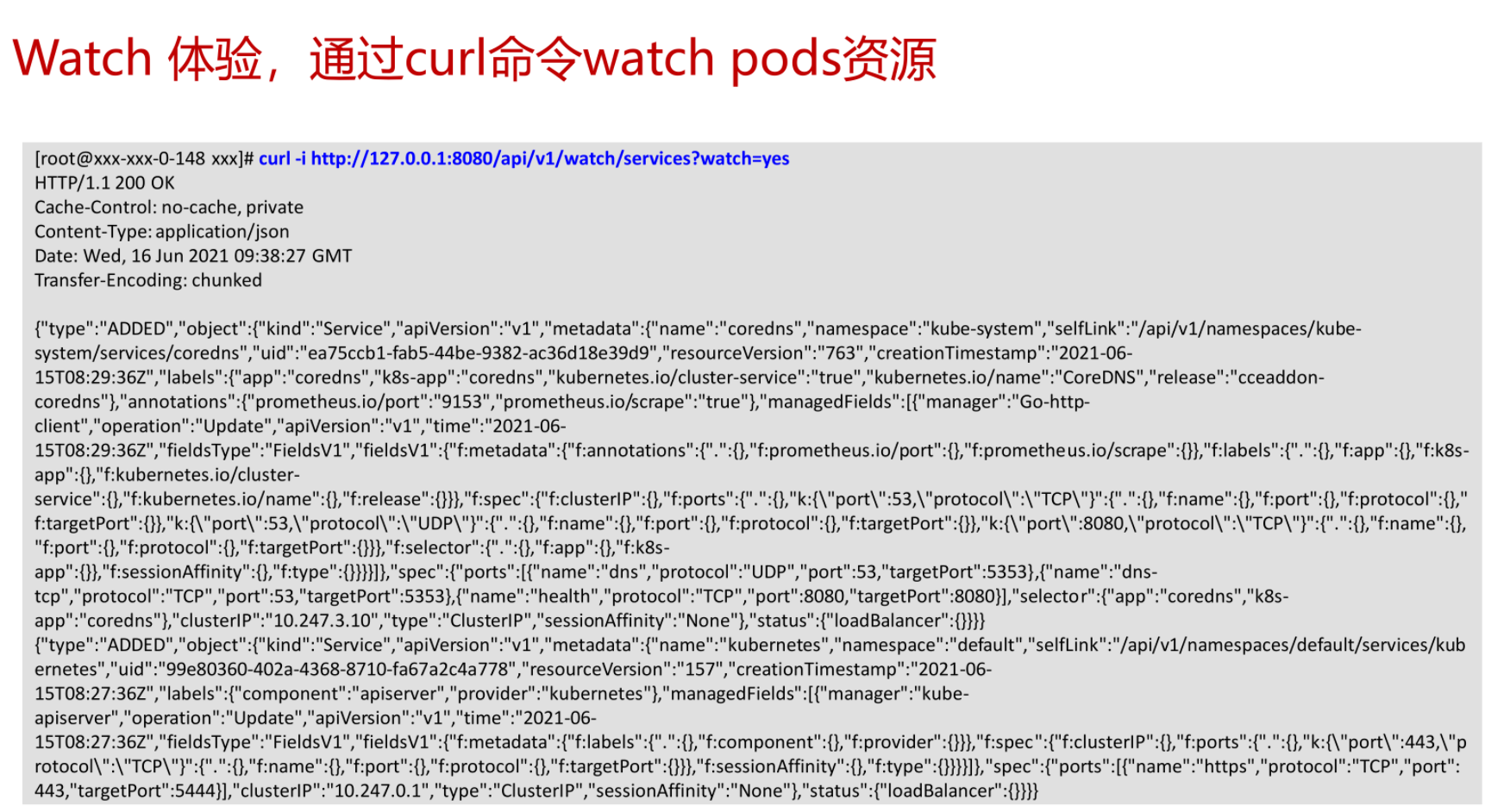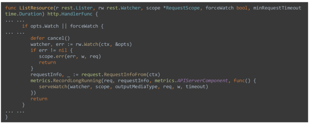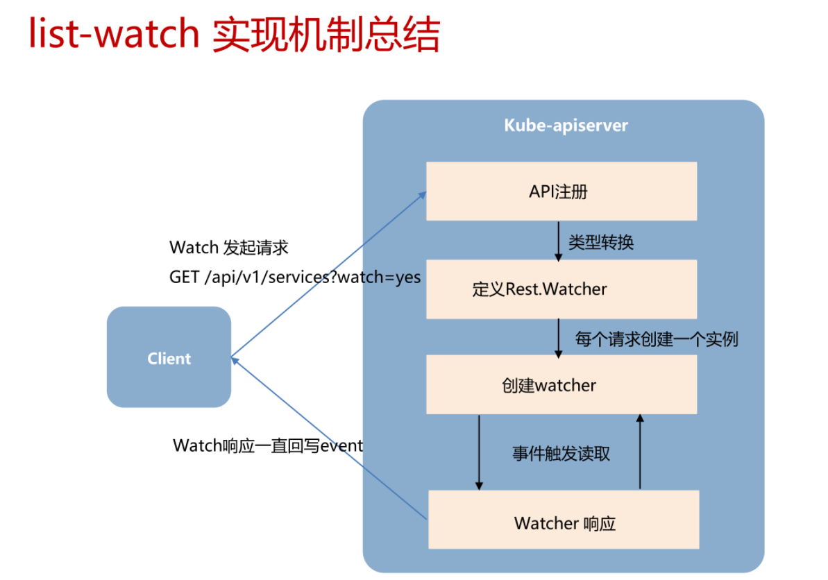 2.提供list和watch服务的入口是同一个,在API接口中通过GET /xxx/services?watch=ture来区分