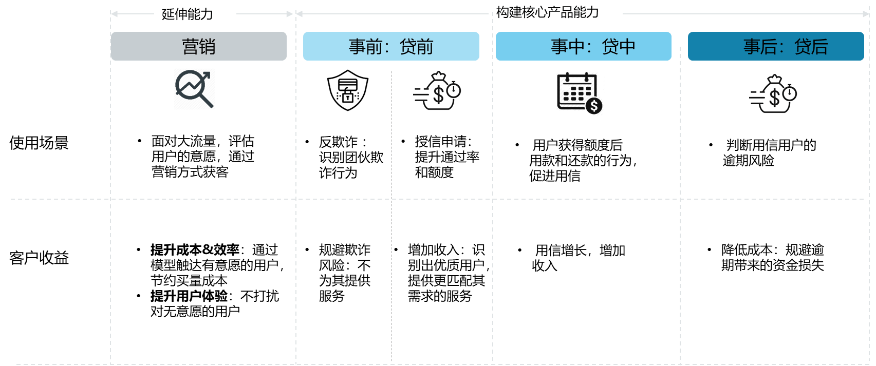 利用海量数据对个人进行风控画像,已成为银行等金融机构在拓展面向个人类业务的常见做法。无论是在前期营销、贷前授信、贷中评估和贷后信用评估,精准个人风控画像都具备突出的业务价值。