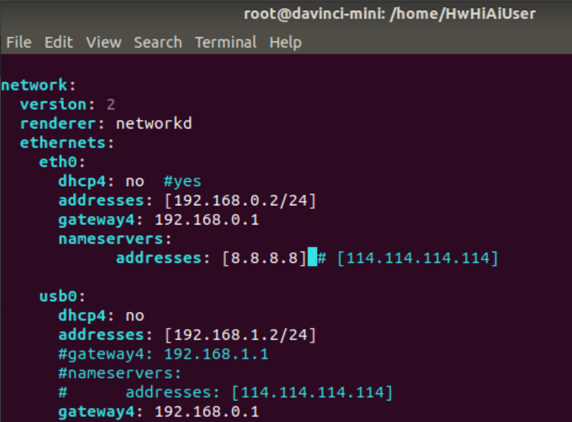 会多个ip地址,是Ubuntu的。Atlas的usb网段是192.168.1.2,网线网段是192.168.0.2