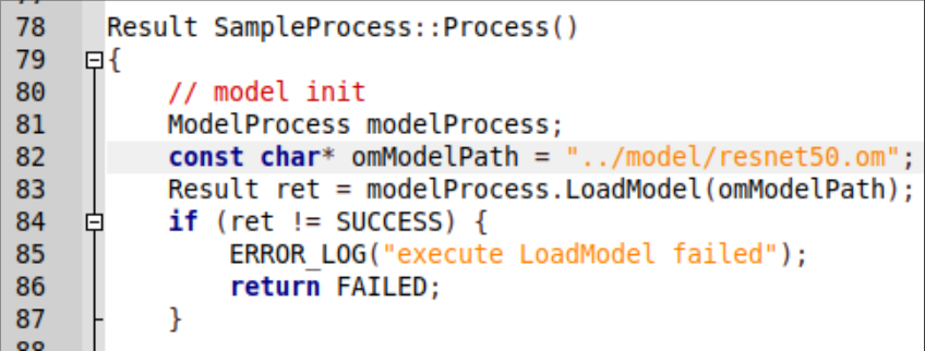 在文件管理器打开 resnet50_image/src,用geany打开sample_process.cpp,在82行处修改模型路径
