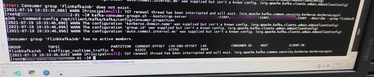 Flink对接消费Kafka数据时,任务超时失败,Flink的JobManager日志上报“org.apache.kafka.common.errors.TimeoutException: Timeout of 60000ms expired before the position for partition trafficgo_realtime_traffic-0 could be determined”,如下所示: